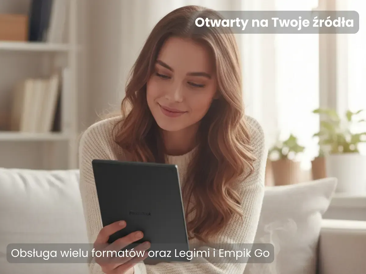 Czytnik obsługuje 25 popularnych formatów plików, w tym zabezpieczenia Adobe DRM oraz LCP, co ułatwia korzystanie z szerokiej oferty księgarń internetowych i wypożyczalni e-booków. Masz także dostęp do popularnych abonamentów czytelniczych, takich jak Legimi oraz Empik Go, dzięki czemu tysiące tytułów są w zasięgu kilku kliknięć. Synchronizacja przez chmurę pozwala mieć swoją bibliotekę zawsze pod ręką - w domu, w pracy i w podróży.
